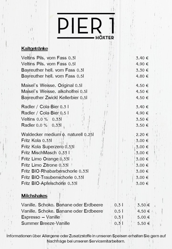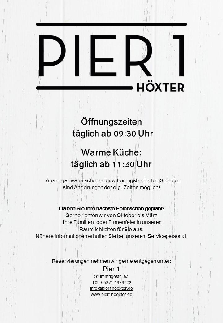 Das Pier 1 in Höxter ist Ihr Ausflugsbistro direkt am Fluss. Es ist mit dem Fahrrad über den mehrfach ausgezeichneten Weserradweg erreichbar und liegt in unmittelbarer Nähe zum wunderschönen Ortskern der Stadt Höxter. Die Fahrgastschiffe der Flotte Weser haben ihren Halt direkt vor der großzügigen Terrasse und den Biergartenflächen mit mehr als 100 Sitzplätzen.